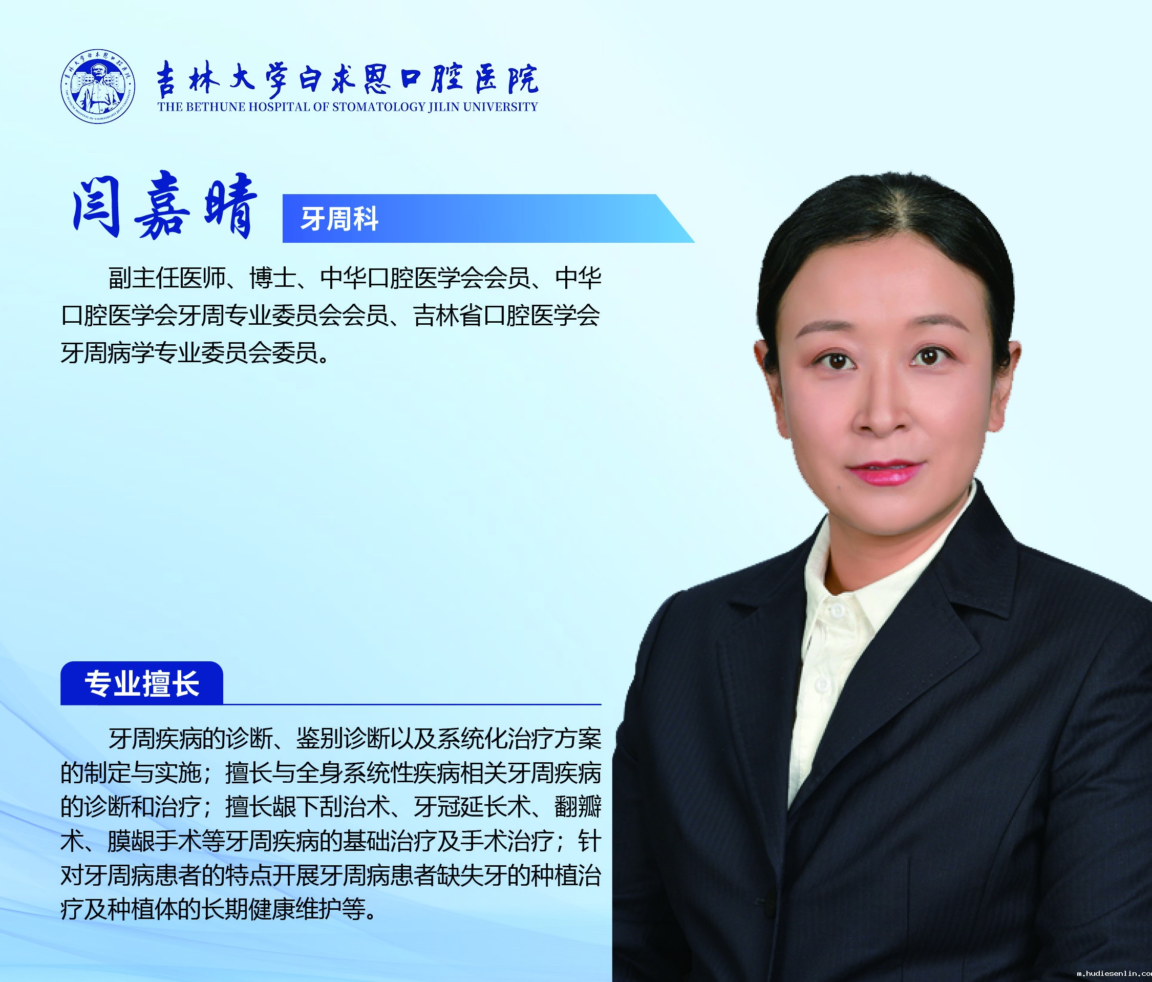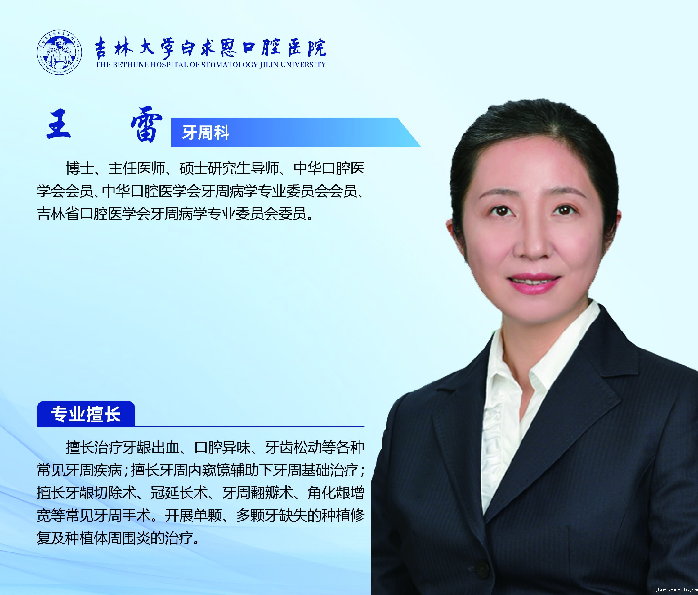 伟德官网下载苹果手机牙周科是吉林省唯一从事牙周病诊断和治疗的专业化科室。是中华口腔医学会牙周病学专业委员的常务委员单位,吉林省口腔医学会牙周病学主任委员单位,上海交通大学第九人民医院集团牙周疾病诊治专科联盟成员。多人曾前往美国、日本的海外知名大学访问学习,先后派遣多位医生前往北京大学、上海交通大学等国内先进科室进修学习,紧跟时代的发展、学习创新。全科医师积累了丰富的临床经验,精于对牙龈炎、牙周炎、伴有全身疾病患者的牙周病诊断治疗。同时科室开展各类牙周手术,包括牙龈切除成形术、翻瓣术、牙冠延长术、骨引导再生术、牙周美学膜龈手术以及单颗牙、多颗牙缺失后的牙种植术等治疗。