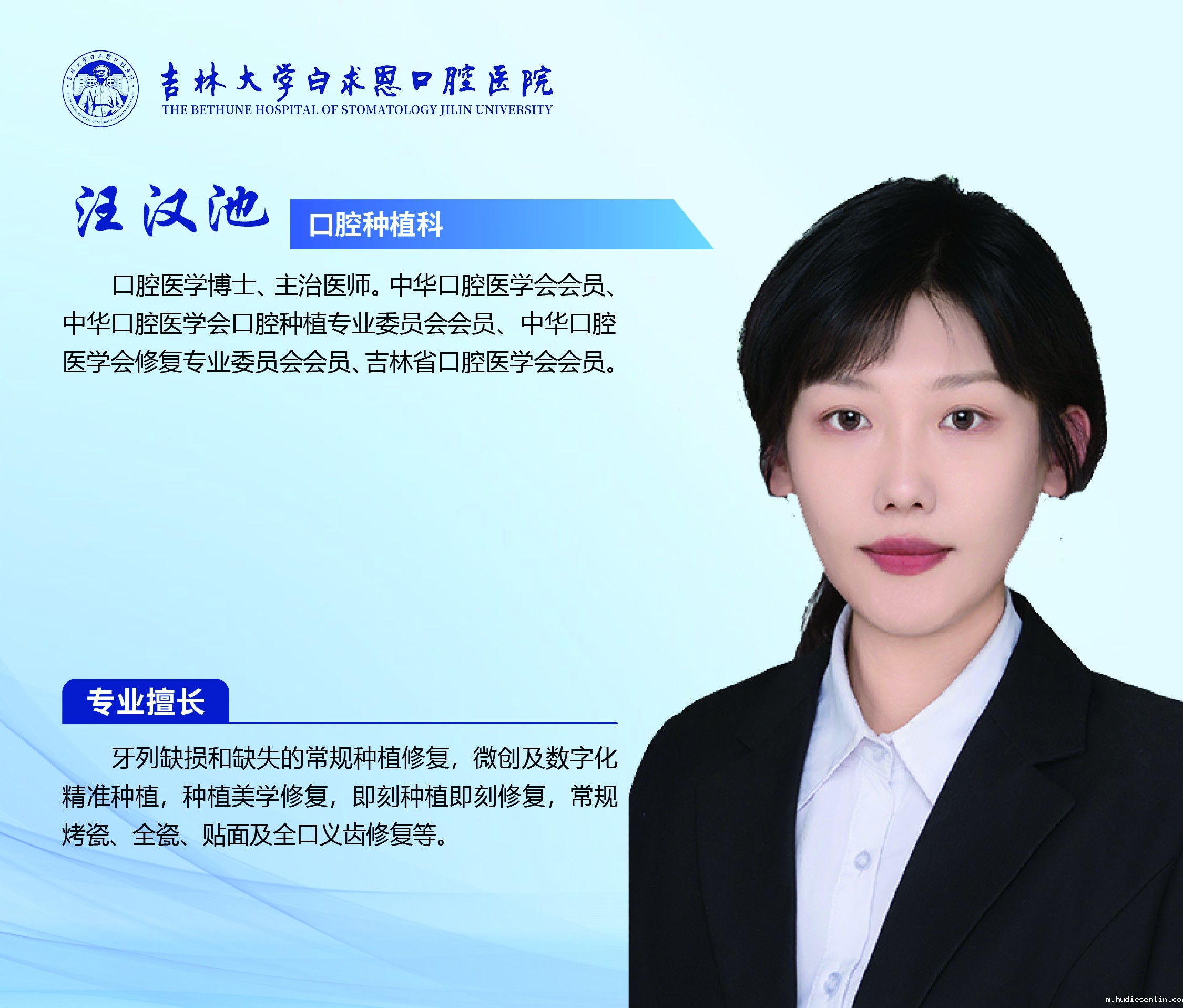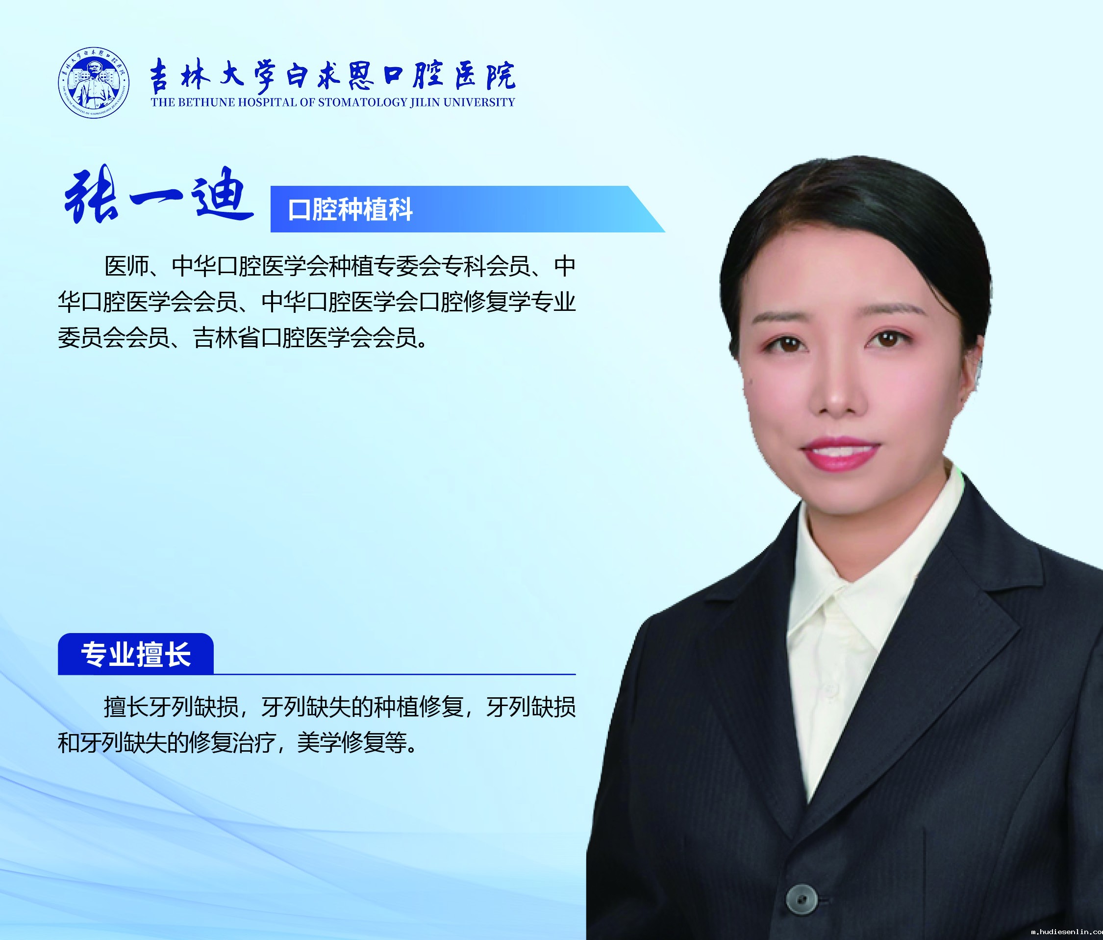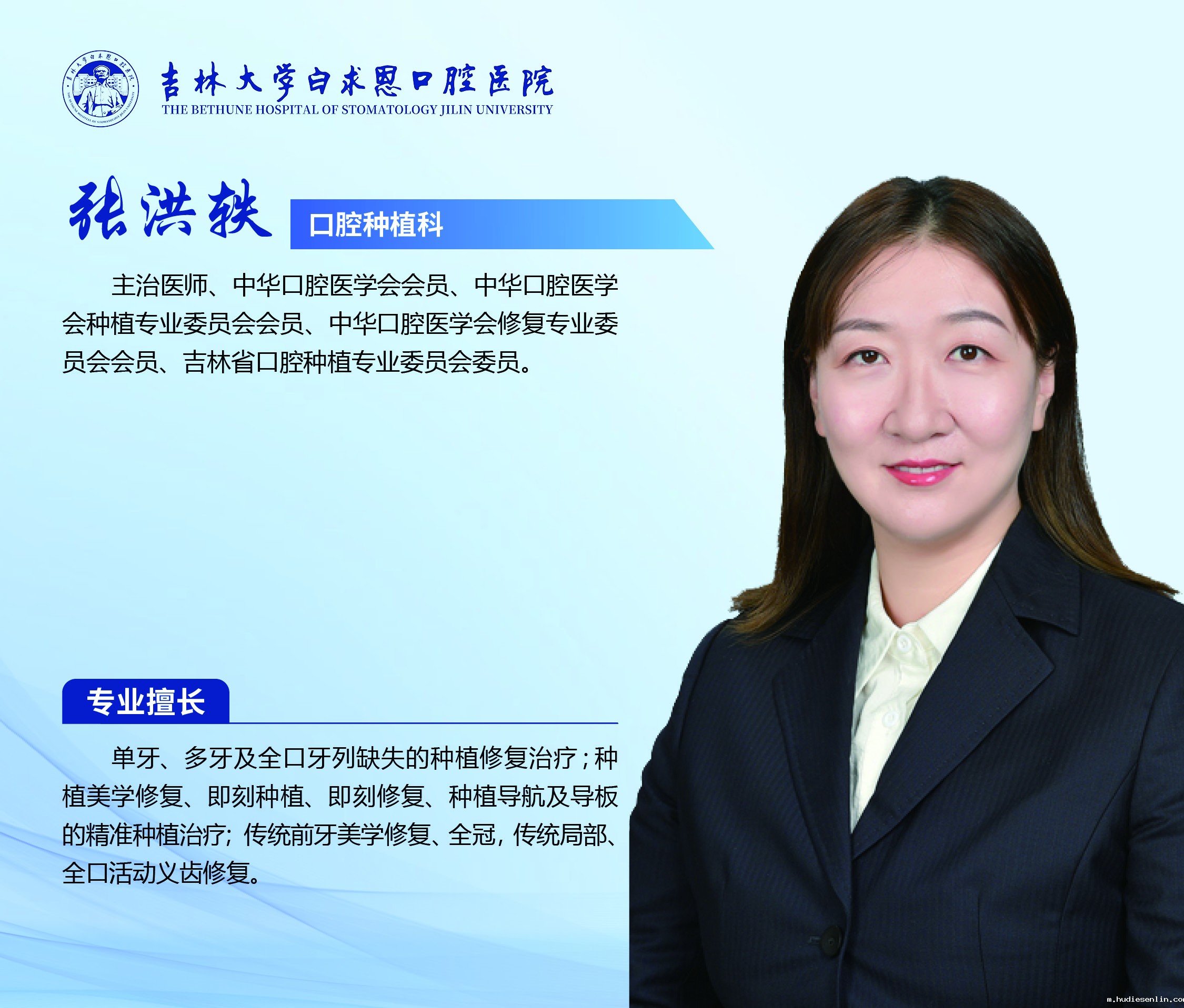 口腔种植科具备完善的三级医生医疗体系,现科室医生18名,其中中华口腔医学会副会长1人、国务院政府特殊津贴获得者1人、长白山学者1人、吉林大学“唐敖庆学者”领军教授1人、吉林省创新拔尖人才2人、博士生导师4人、硕士生导师9人、主任医师4人、副主任医师5人、主治医师5人、医师3人;护士13人,其中主任护师1人、主管护师4人。全体医护人员秉承患者至上,医者仁心,精益求精,敬畏生命理念为患者服务!